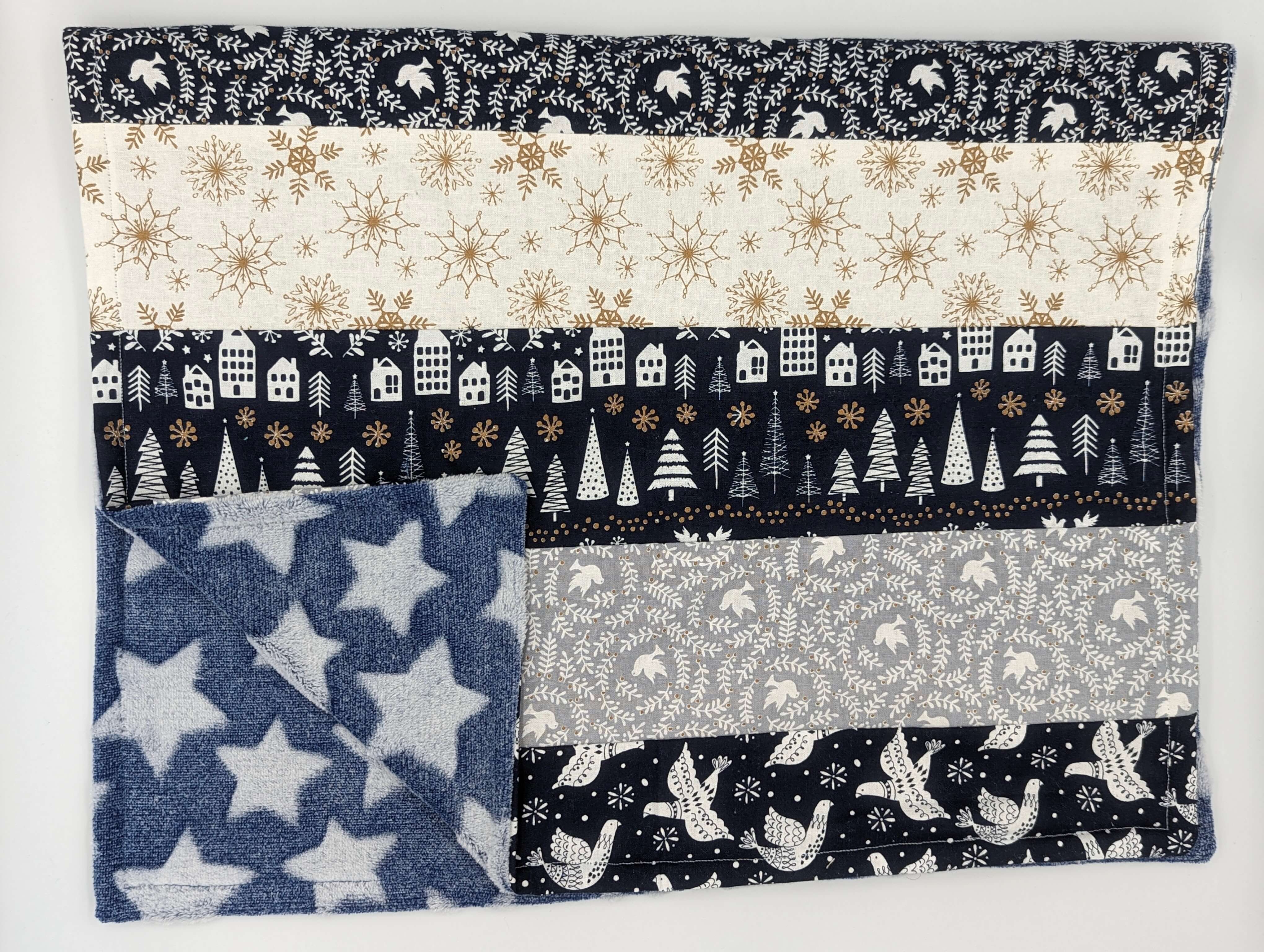 Introducing our Seasonal Blanket, perfect for embracing the spirit of the seasons while staying cozy and sustainable. Crafted from recycled seasonal fabrics and backed with soft fleece, this blanket offers warmth and comfort for your little one. Made with 100% cotton, it's a thoughtful choice for both your child and the planet.
