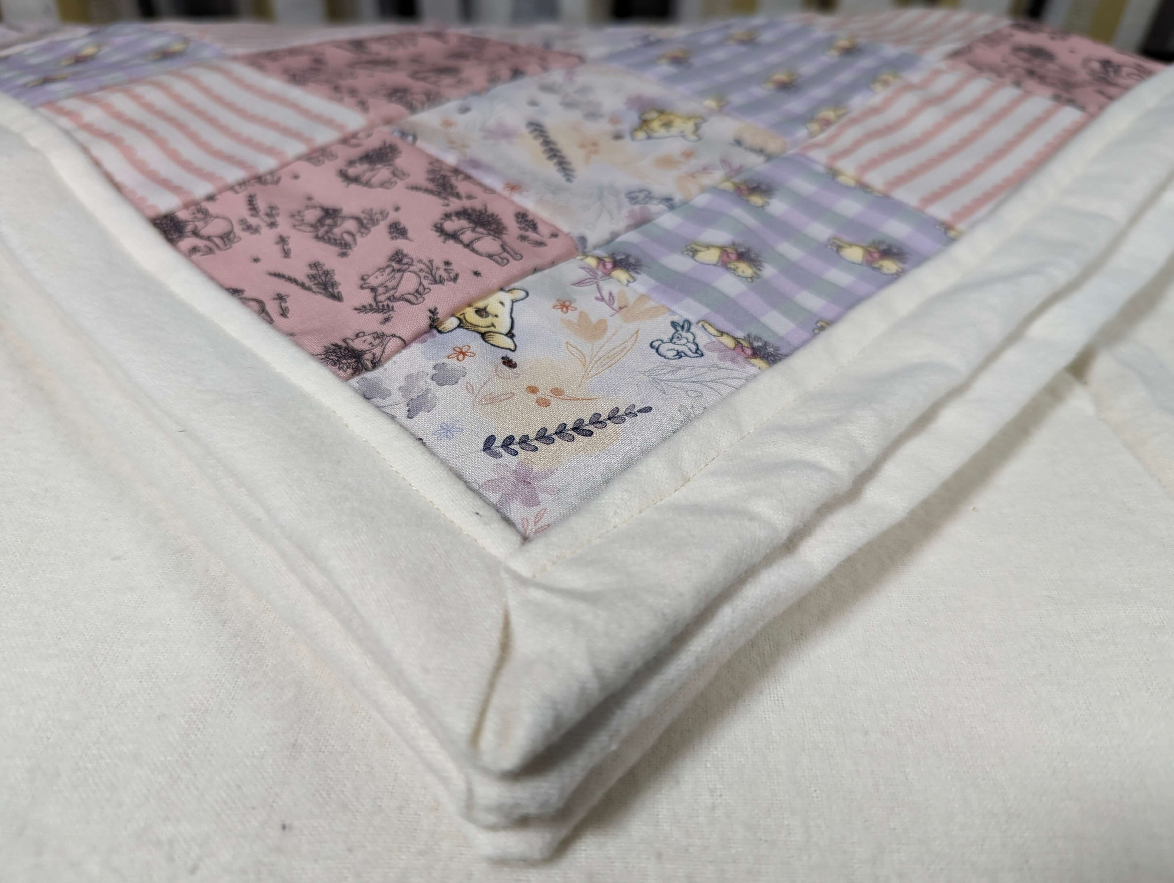 Introducing our enchanting Winnie the Pooh Patchwork Blanket, designed to wrap your little one in the warmth of childhood nostalgia. Crafted from 100% cotton with a soft brushed backing, this blanket features beloved characters from the Hundred Acre Wood in a delightful patchwork design, perfect for snuggling and storytime. Bring the magic of Winnie the Pooh into your child's nursery with this cozy and charming blanket.